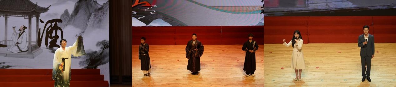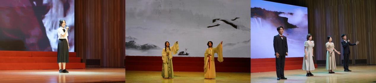 决赛现场,大学生组诵读名家名篇经典,呈现出一场精彩的视听盛宴。《青春中国》《百年交响》等作品抒发了中华儿女在革命与改革的历史进程中的坚韧信念;《我是一条古老的河流》《满江红》等作品体现了对历史的反思和对中华民族气节的礼赞;《就是那一只蟋蟀》《会唱歌的鸢尾花》等作品表达了对生命和人生的深入思考,《唐诗里的中国》《将进酒》等作品展现了对中国古典诗词的深刻理解和热爱。参赛选手们通过深情的演绎,展现了中华文化的独特韵味和精神内涵。