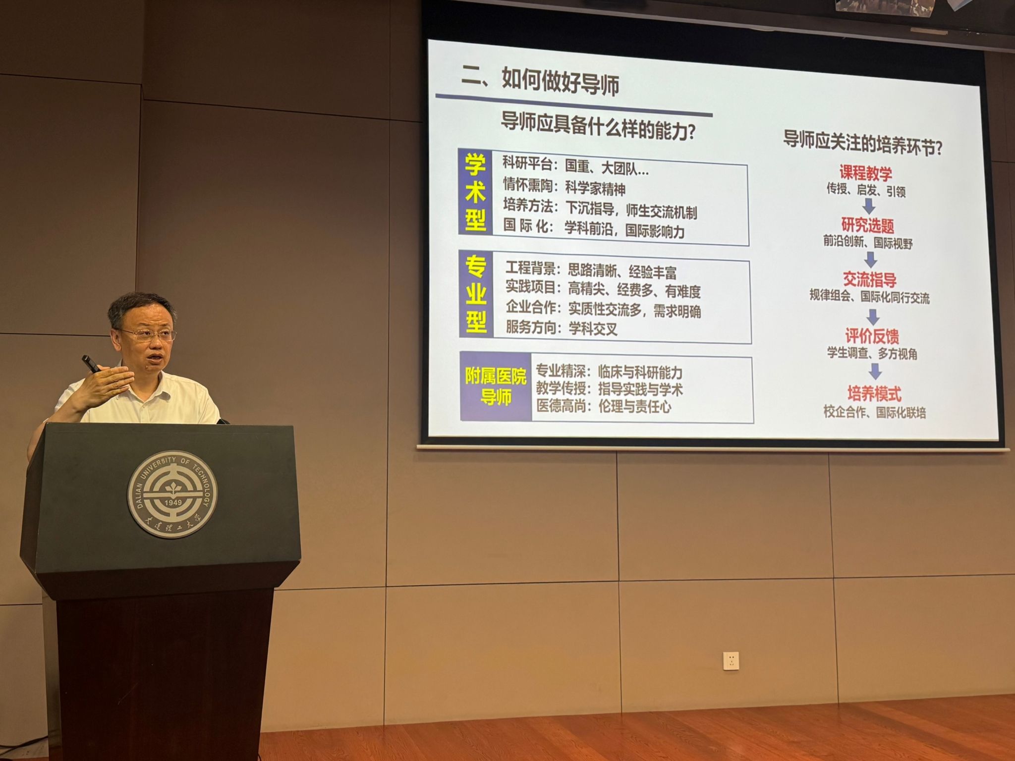 培训环节,研究生院常务副院长王同敏以《做研究生成长成才的引路人》为题,引导导师们明确岗位职责、行为准则,明晰导师在研究生培养过程中的崇高使命与关键作用;党委学生工作部部长王一以《导师思想政治教育职责与落实》为题,帮助导师们掌握在学生思想政治教育工作中的具体职责与实施路径;辽宁省优秀研究生导师团队负责人、计算机科学与技术学院林鸿飞教授围绕《导学关系与团队文化》,结合自身经验分享构建良好导学互动及团队氛围的方法;学校心理健康教育与咨询中心主任鲍英善结合实际案例分享《心理健康常见问题与防范》,通过案例解析帮助导师们识别和应对研究生心理健康相关问题。