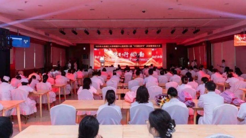 盛夏未央,光影渐长。8月19日上午,大连理工大学附属中心医院第八届“中国医师节”庆祝及表彰大会在北院俱乐部成功举行。市卫生健康委副主任曲刚、医政处副处长王兆坤,大连理工大学医学部部长曲鹏、党委书记兼常务副部长覃开蓉、副部长魏健雄等应邀出席并致辞,医院领导班子全体、各岗位职工代表及本年度受到表彰的杰出医师群体齐聚一堂,共同庆祝属于医务工作者的光辉节日。大会由庄熙晶副院长主持。