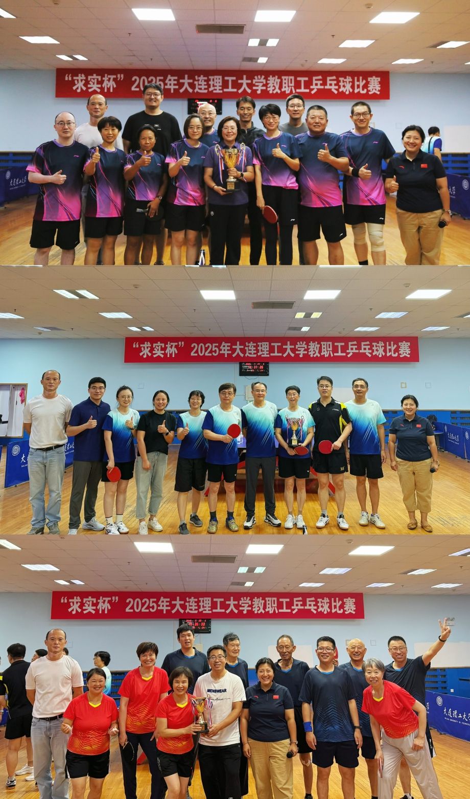 经过一天的紧张角逐,“求实杯”2025年大连理工大学教职工乒乓球比赛圆满落下帷幕。最终校机关代表队摘得桂冠,建设工程学院代表队获得亚军,医学部代表队获得季军。本次赛事得到了体育与健康学院、文体场馆中心、医学部、各二级工会的全力支持和配合。