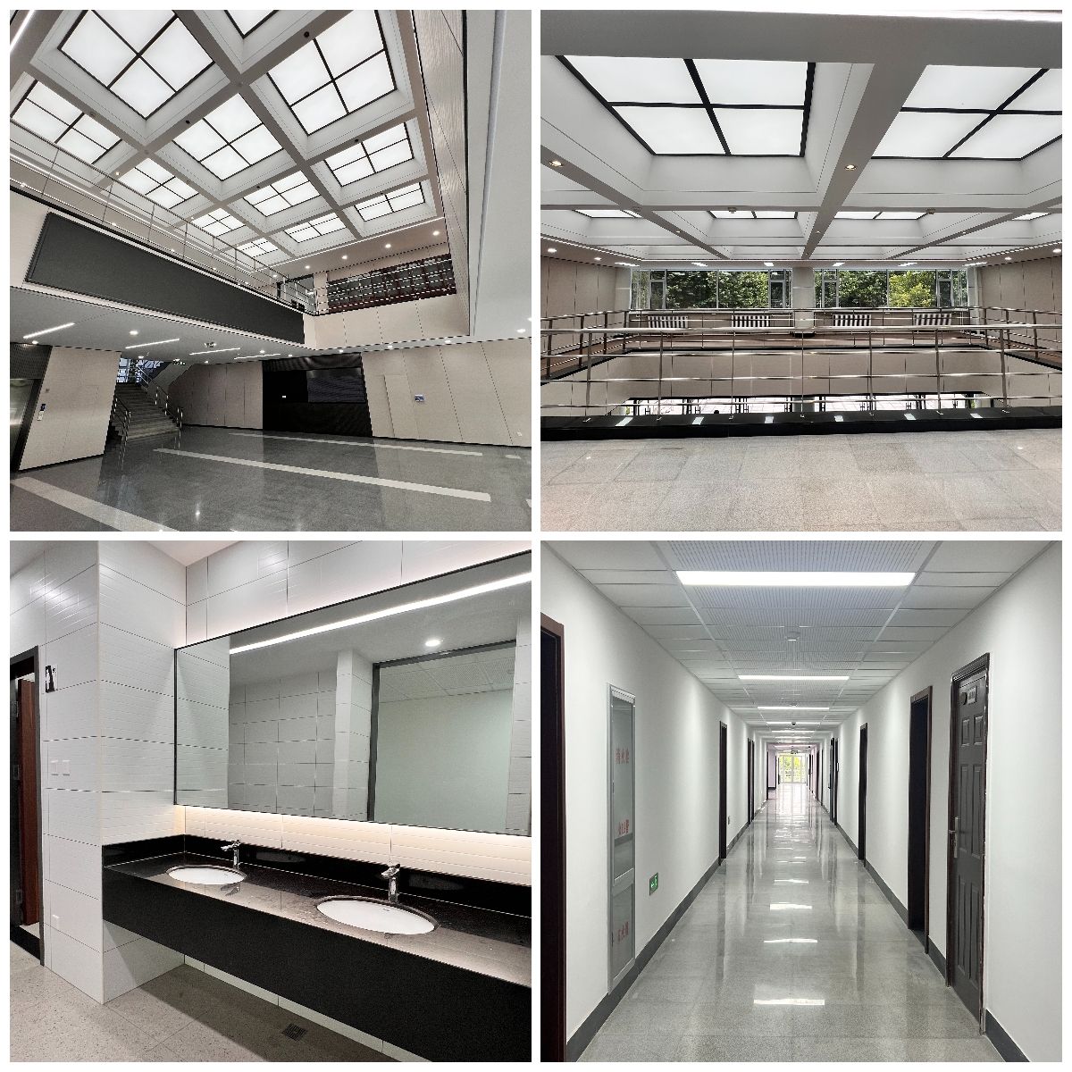 海宇楼(一号实验楼)建成于2001年,建筑面积11795平方米。本次修缮秉持“功能提升与形象焕新并重”的理念。外观上,延续“大白楼”白色主基调,对立面分隔线条与窗下装饰带色彩进行优化,增强建筑现代感。外窗重新设计,扩大固定玻璃面积,提升通透度;幕墙采用高性能低辐射Low-E玻璃外片和本体灰内片玻璃组合,在保障采光与隐私的同时,显著提升保温隔热性能。