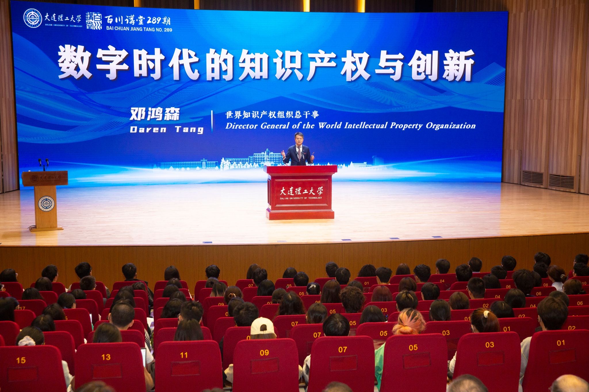 10月13日,世界知识产权组织总干事邓鸿森做客“百川讲堂”第289期,带来主题为《数字时代的知识产权与创新》的讲座,国家知识产权局局长申长雨,世界知识产权组织副总干事王彬颖,国家知识产权局副局长卢鹏起,辽宁省知识产权局局长敖然,大连市政协副主席、高新区党工委书记骆东升,我校校长贾振元,以及师生代表共计550余人到现场聆听讲座。副校长王博主持讲座。