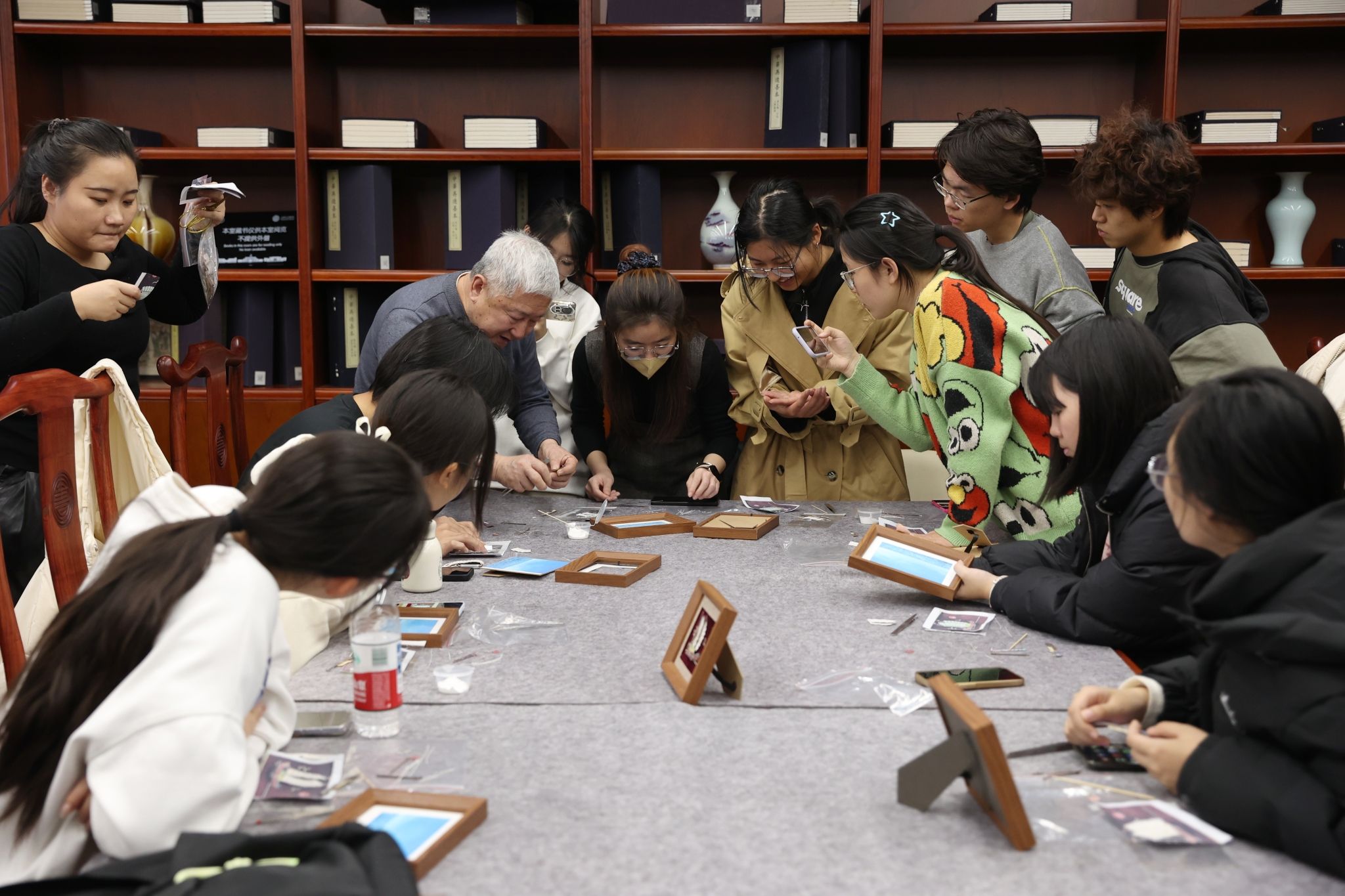 11月28日下午,由党委宣传部主办、未来技术学院承办、图书馆协办的文苑第87期“千年贝雕韵·匠心遇未来”非遗工坊在伯川图书馆凌水书屋举办。工坊特邀中国工艺美术大师、大连贝雕省级非物质文化遗产代表性传承人金阿山、金吉走进校园,为师生带来一场集文化解读、作品展示与动手实践于一体的中华优秀传统文化美育实践课。