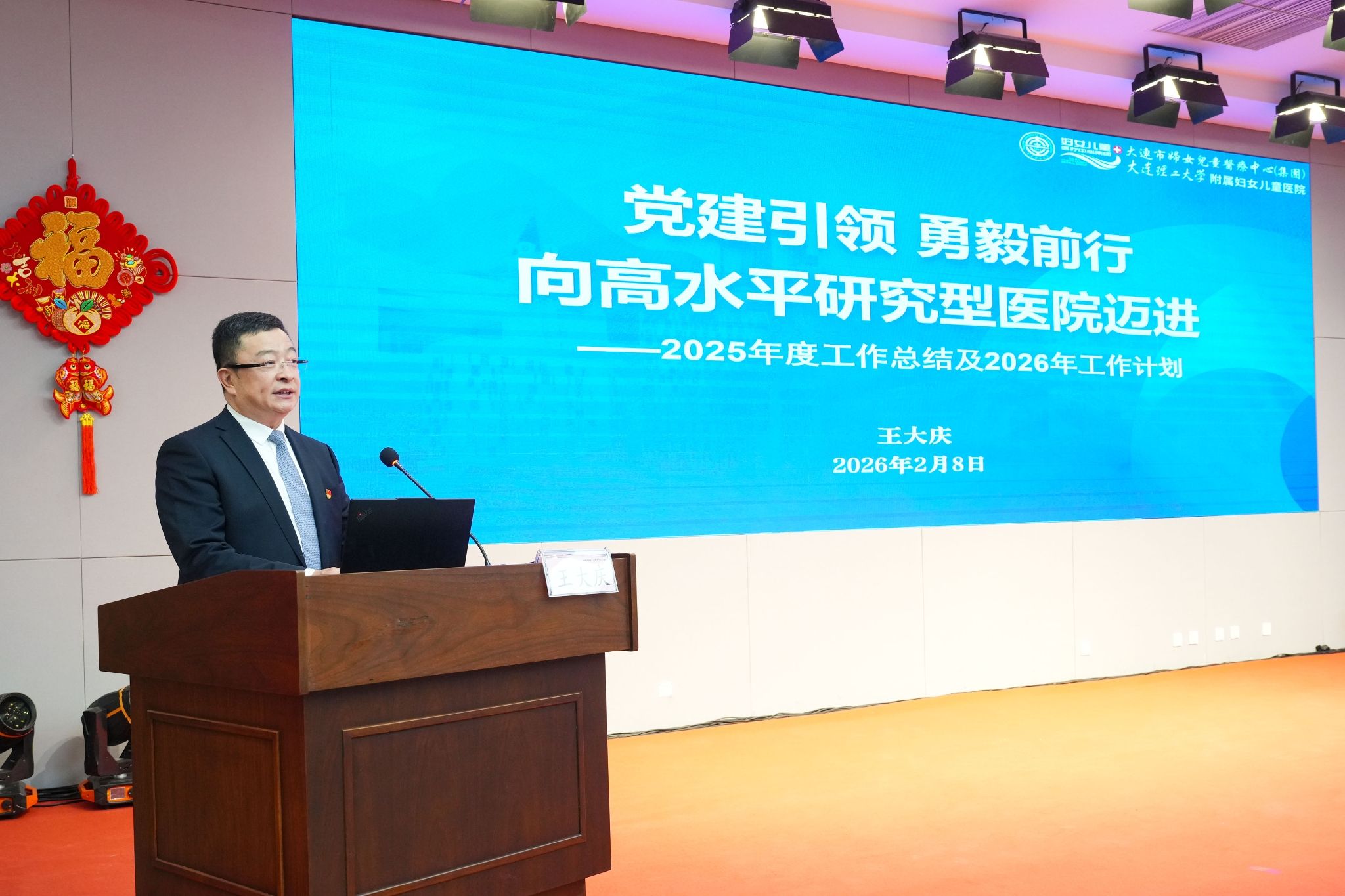 康旭东代表学校向坚守临床一线的医务工作者致以最诚挚的问候和衷心的感谢,并表示,过去的一年,医院成为学校附属医院和第二临床医院,进一步增强了学校医学学科的力量。作为辽宁省儿童、妇产区域医疗中心,医院始终以民生服务为导向,持续提升疑难重症诊疗水平,为区域妇女儿童健康筑牢坚实屏障。他指出,学校将进一步深化与医院的战略合作,聚焦妇儿健康领域的重大需求,联合组建跨学科创新团队,攻克更多“卡脖子”技术难题;完善“医学+X”人才培养体系,推动医教融合、医工交叉向更深层次、更高水平发展,为打造东北医疗新高地、建设健康大连注入强劲动能。