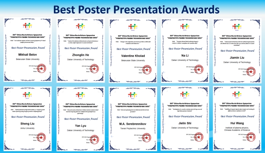 11月13日至16日,经教育部国际合作与交流司批准,由大连理工大学、俄罗斯托木斯克理工大学、白俄罗斯国立大学共同主办、由物理学院、中白学院和独联体国家研究中心承办的第13届中俄白等离子体科学与技术会议(13th China-Russia-Belarus Symposium“PERSPECTIVE PLASMA TECHNOLOGIES 2022”, PPT-2022)在大连成功召开。开幕式由大会主席、我校中俄白等离子体科学技术联合研究中心主任丁洪斌教授主持,校长助理陆安慧教授、物理学院党委书记王正汹教授、三束实验室首届主任马腾才教授、大会共同主席列姆涅夫教授和乌格罗夫教授分别在开幕式致辞。本次大会邀请到中科院等离子体物理研究所副所长陈俊凌研究员、副所长胡建生研究员等来自国内、俄罗斯、白俄罗斯20余家大学和研究院所100余名专家、学者线下或线上参会。