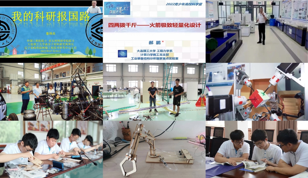 2022年青少年高校科学营大连理工大学分营于7月25日至29日在线上举办。分营以“‘连理’大工,筑梦未来”为主题,在5个活动日分别围绕“连理·大工”“名师·大工”“科学·大工”“创新·大工”“青春·大工”5条主线设计活动,通过“云”游校园、“云”听院士专家讲座、“云”参观国家重点实验室、“云”探访大学生创新实践基地、“云”互动大学生榜样等富有思想性、科学性、趣味性的活动,为来自全国14个省(市、区)26所中学的170名营员、16名带队教师和38名志愿者量身打造了奇幻浪漫的科技创新之旅。