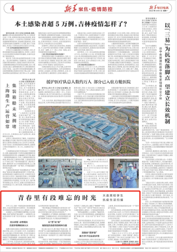 4月4日,新华每日电讯报道了我校及周边院校的青春学子在抗击疫情期间留下的难忘记忆。