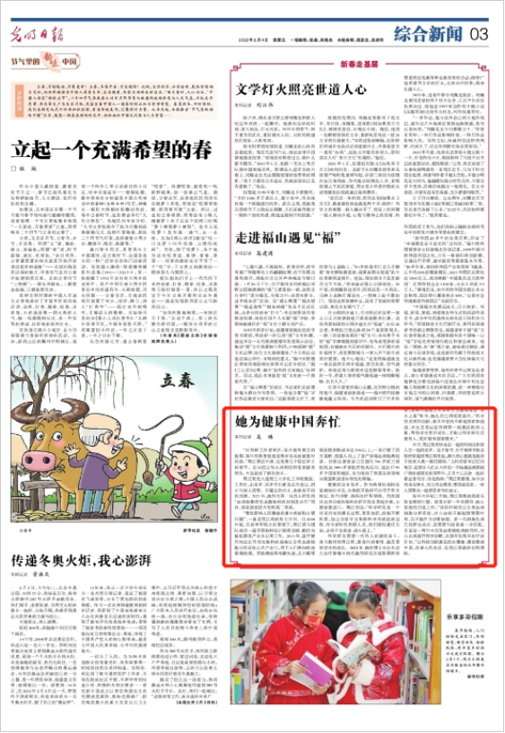 2月4日,《光明日报》03版讲述了我校化工学院教授樊江莉为科研而多年留在异乡过春节的故事。她最深切的期盼就是让科技创新惠及民生健康,建设健康中国,改善人民生活。