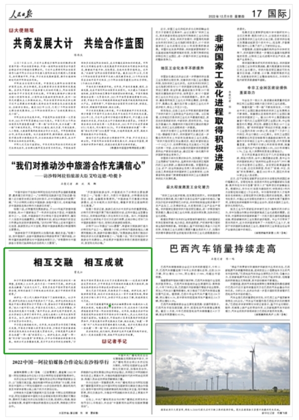 12月8日,《人民日报》刊发文章《相互交融 相互成就》,报道了对我校2014届本科毕业生、沙特阿拉伯国际校友纳义夫勒·穆布提的采访,中央电视台新闻频道于同日报道。
