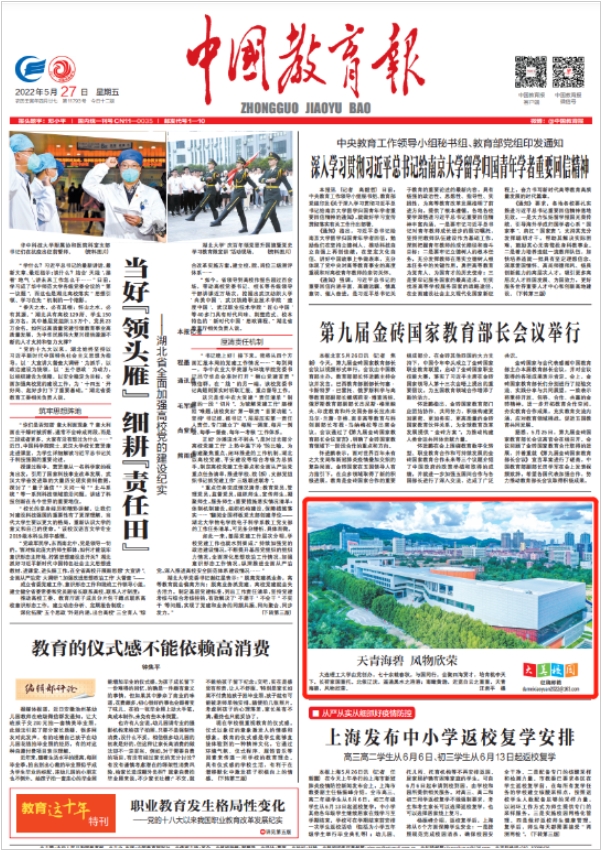 5月27日,《中国教育报》头版刊发我校校园风景图。