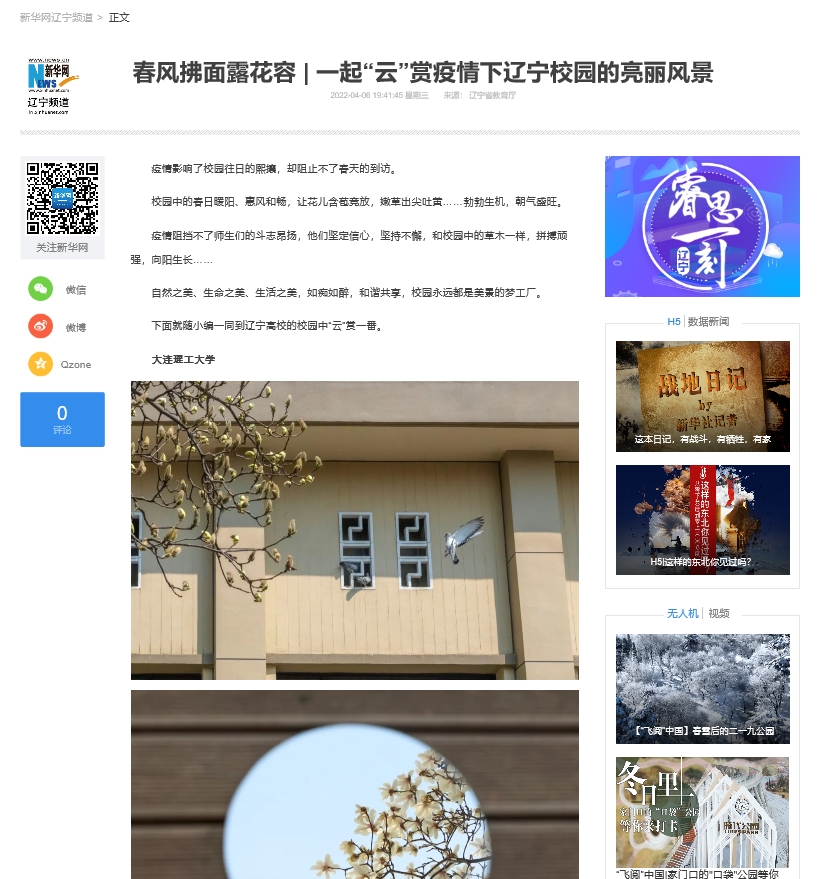 4月6日,新华网报道我校校园春日景象。