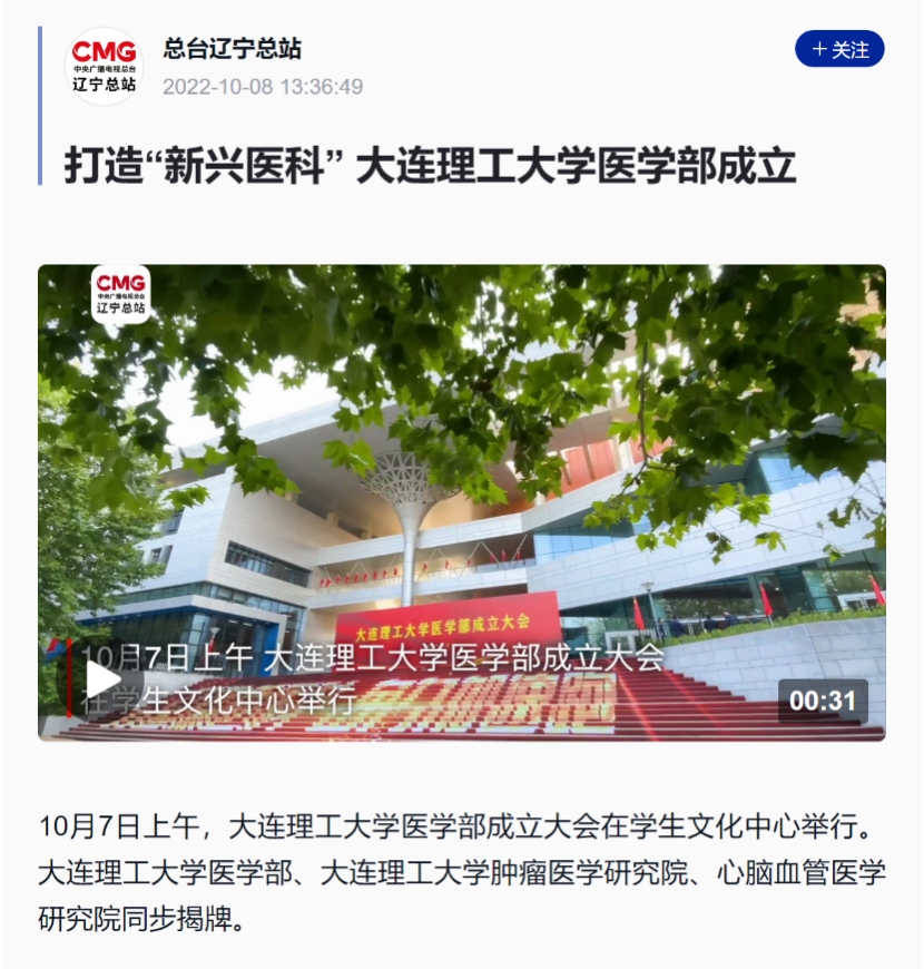 10月8日,央视新闻客户端对我校医学部的成立进行了报道。