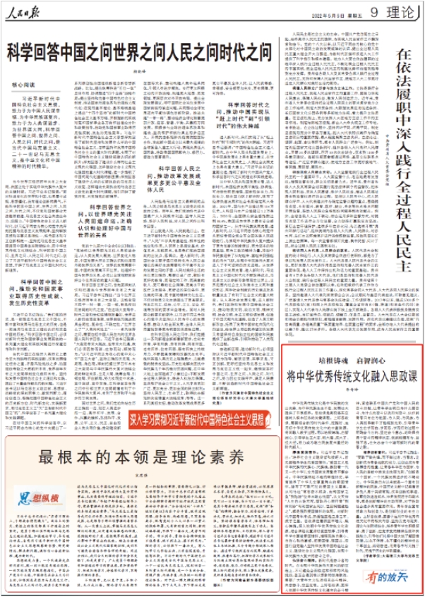 5月6日,《人民日报》报道我校马克思主义学院李奇峰老师的理论文章《将中华优秀传统文化融入思政课》。