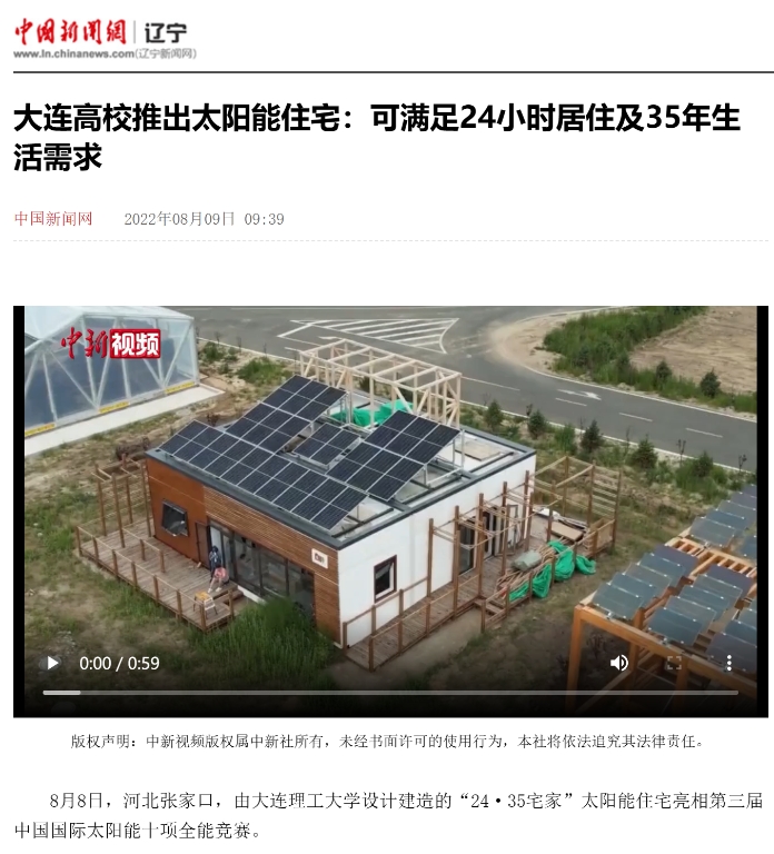 8月9日,中国新闻网报道我校设计建造的“24·35宅家”太阳能住宅亮相第三届中国国际太阳能十项全能竞赛,该设计可满足每天24小时居住功能及35年生活需求。