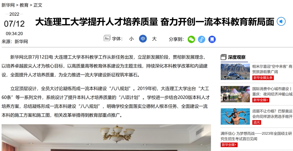 7月12日,新华网报道我校立足新发展阶段,贯彻新发展理念,以培养卓越拔尖人才为核心目标,凝练形成一流本科建设“八八规划”。