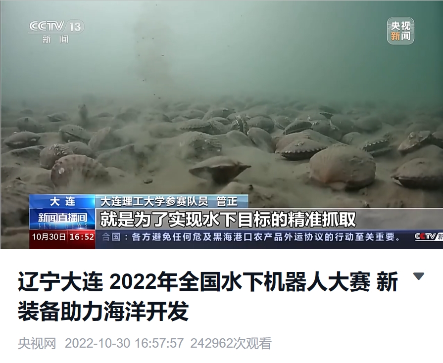 10月30日,央视新闻报道了由我校承办的2022年全国水下机器人大赛盛况。