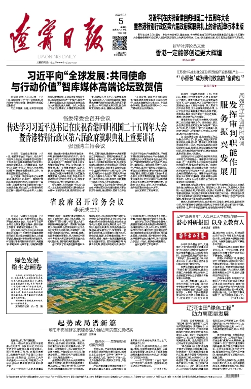 7月5日,《辽宁日报》头版讲述了郝鹏教授投身科研、以身育人的故事。