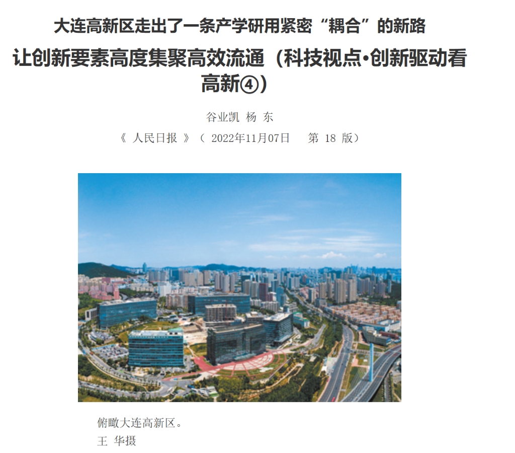 11月7日《人民日报》第18版对大连高新区进行报道,其中报道聚焦,在英歌石科学城,大连理工大学将开展更具辐射带动效应的协作。