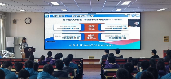“心系连理,筑梦大工。”大连理工大学软件学院赴辽宁省抚顺市第二中学母校行寒假实践团前往高中母校宣传大工,让学弟学妹们零距离感受大工风采。宣讲前,他们向学弟学妹发送大工专业划分报考等相关资料,加强宣讲针对性;以宣讲宣传+走班宣传的方式,将成长与经验、眼泪与欢笑、告诫与祝福一起带给学弟学妹。在宣讲过程中,成员们认真介绍了大工的科研实力、学习环境以及大学生活感悟,让学弟学妹们更加向往能够考入大工。
