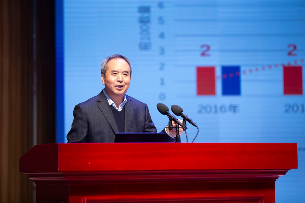 校长贾振元以《深化改革攻坚,推进加速卓越,奋力开创“双一流”建设新局面》为题作工作报告。他表示,过去一年学校坚持以习近平新时代中国特色社会主义思想为指导,学校事业发展取得新成就。成绩的取得,是全体师生一道拼出来、干出来、奋斗出来的,他代表学校向全体教职员工表示感谢。