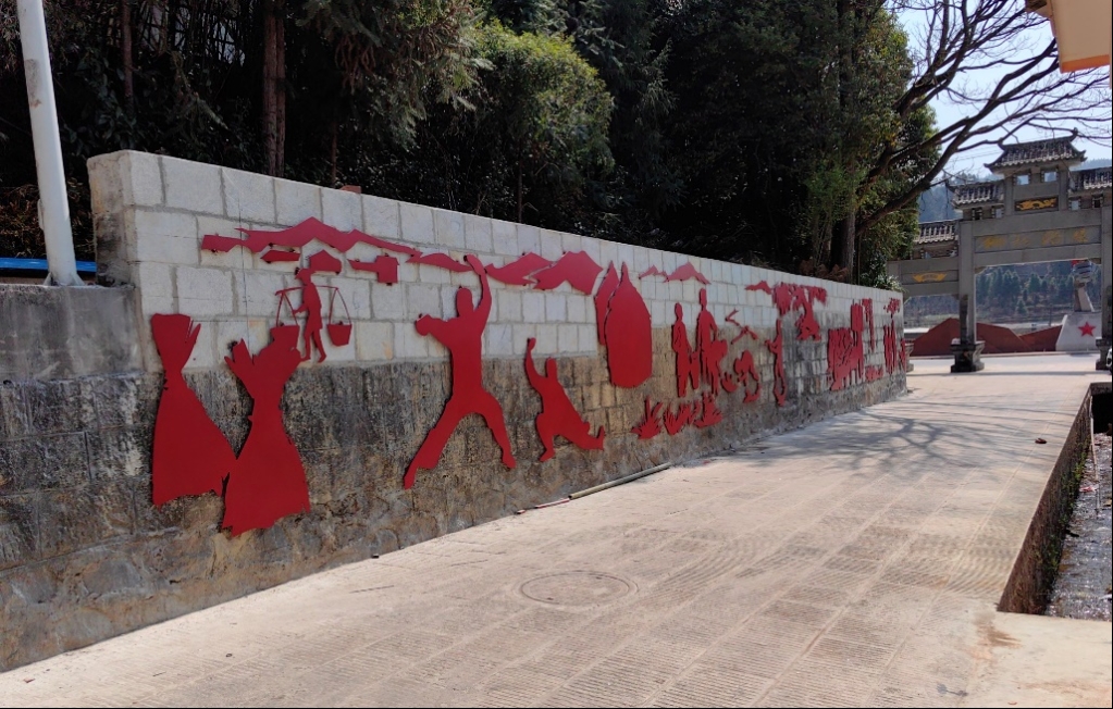 项目的建设内容围绕朱家壁的革命传奇展开,表现形式包括圆雕、浮雕和壁画三种形式。为了深入了解红色美丽村庄试点项目建设规划,2022年9月1日,中心一行3人到象达镇朱家庄开展红色美丽村庄项目建设调研,就该项目与龙陵达成共识,明确帮扶具体事项和时间节点,明确“9月见成效、12月出效果、3月全面竣工验收”。