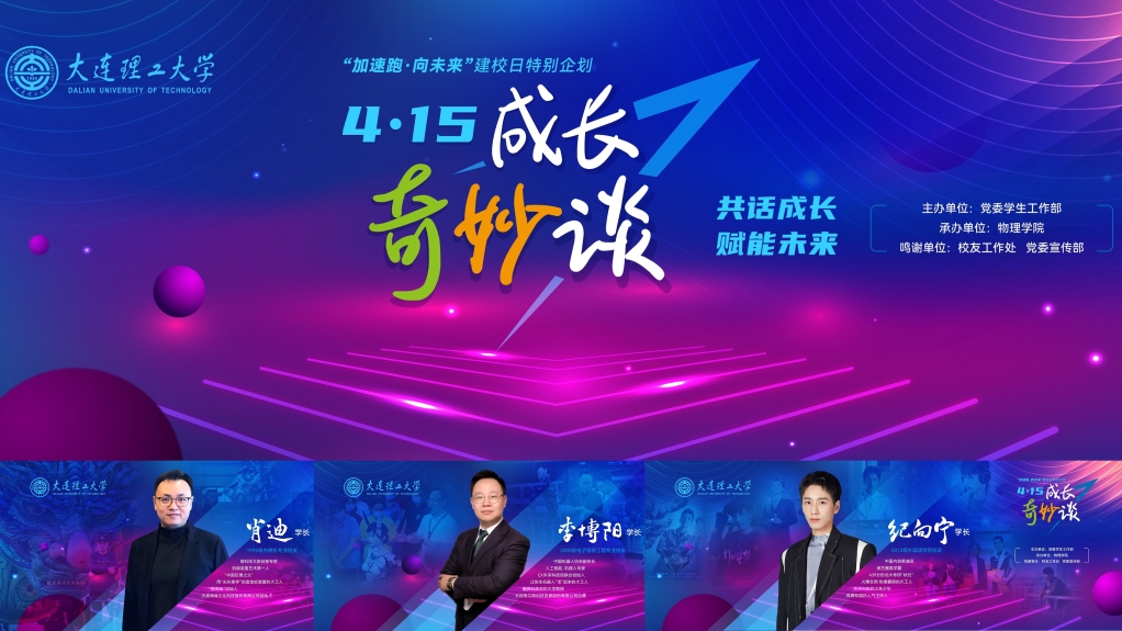 “共话成长,赋能未来”4·15成长奇妙谈是在我校“全面发展、分类卓越、多元成才”理念牵引下,创新打造的建校日特别活动企划。未来,党委学生工作部将围绕该理念不断创新育人形式、丰富载体内涵,继续探索多主体协同育人机制,激励大工学子矢志追求卓越,点燃奋斗梦想。