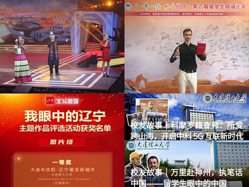 多年来,我校国际学生屡次登上校外舞台,向世界展现大工风采。我校国际学生代表受中央电视台之邀参加CCTV3《综艺盛典》讲述“我的留学故事”;中央广播电视总台国际在线栏目以《同心战“疫”大连理工大学国际学生为中国加油》《也门阿道:亲身感受“中国力量”》为题,对我校国际学生的在华经历进行了专题报道;俄罗斯籍学生罗正阳在“一带一路助我圆梦”全国留学生朗读比赛中获得季军并受邀主持“中国——东盟教育交流十周年庆典晚会”;在2021“中国与非洲”影像作品大赛中,我校两部参赛作品荣获中国外文局友谊奖,分获辽宁省一等奖与三等奖。2022年我校国际学生在首届“我眼中的辽宁”主题作品评选活动中获一等奖;“留学生眼中的大工这十年”“万里赴神州,执笔话中国”留学生讲中国故事等活动相继被国家留学基金委推介报道,不断提升“留学大工”品牌影响。