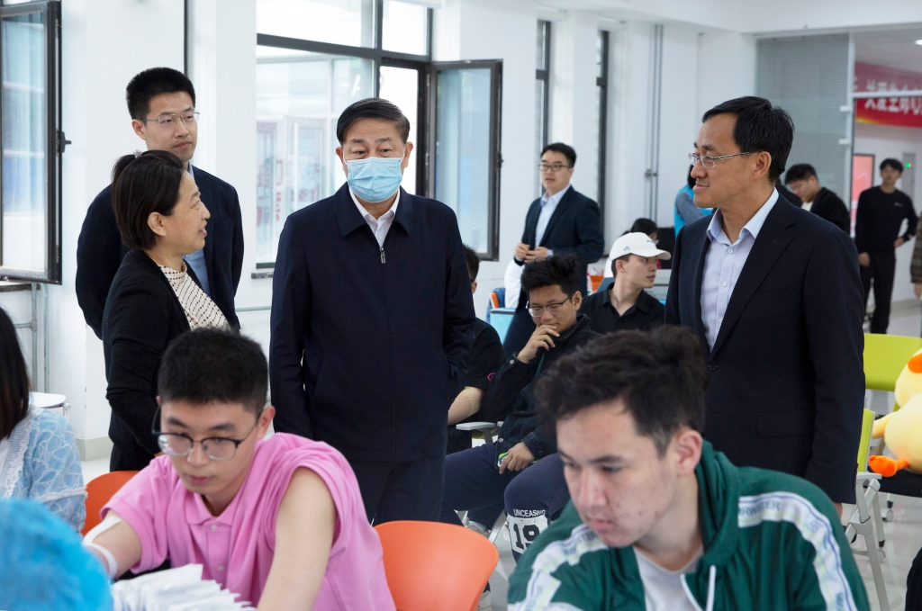 无偿献血是无私奉献、救死扶伤的崇高行为,学校高度重视,5月17日,校党委书记项昌乐现场慰问献血学生,并指导相关工作。项昌乐详细询问献血流程和各项服务保障措施。在献血区,他称赞同学们的无私奉献精神,安抚缓解大家紧张情绪,并仔细叮嘱注意事项。