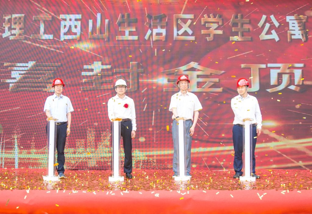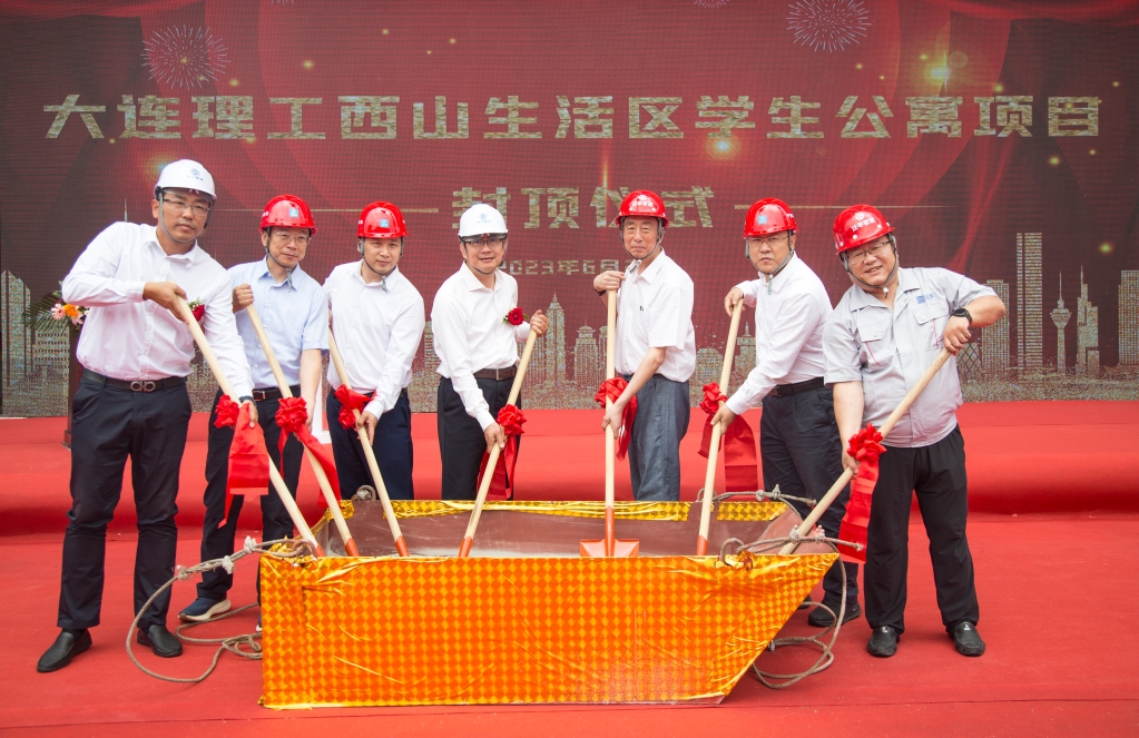 姚山与相关建设单位领导共同浇筑最后一次混凝土。他代表学校向项目封顶表示热烈祝贺,向奋斗在一线的全体建设者表达衷心感谢。西山生活区学生公寓楼的建成将改善学校人才培养硬件环境,可解决近三千位学生的住宿问题,有助于学校人才培养和科学研究水平的提高,吸引更多优秀的高层次人才汇聚大工,提升办学实力,为高质量发展奠定坚实基础。姚山强调,学校高度重视项目的工程建设工作,全校师生也有很高期望,要突出安全施工、确保工程质量、加快工程进度、强化优质服务,扎实做好各项工作,力争早日高质量完成后续工程建设,为“幸福大工”增添助力。