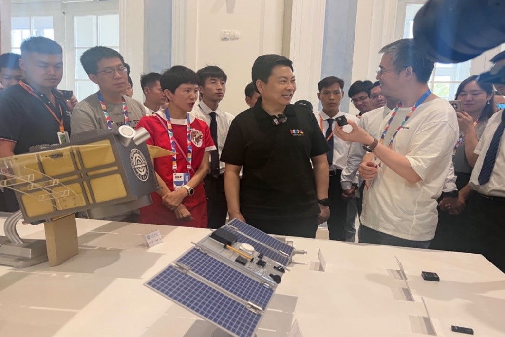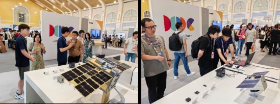 卫星及相关展品吸引了专业观众与普通消费者的关注。开放原子开源基金会理事长孙文龙,华为常务董事、消费者BG CEO、智能汽车解决方案BU CEO余承东,华为终端BG软件部总裁龚体、华为终端云服务首席战略官林振辉等莅临我校展位,并对相关研究工作给予了高度评价。余承东在大会首日演讲中将大连1号-连理卫星作为行业应用案例进行展示。