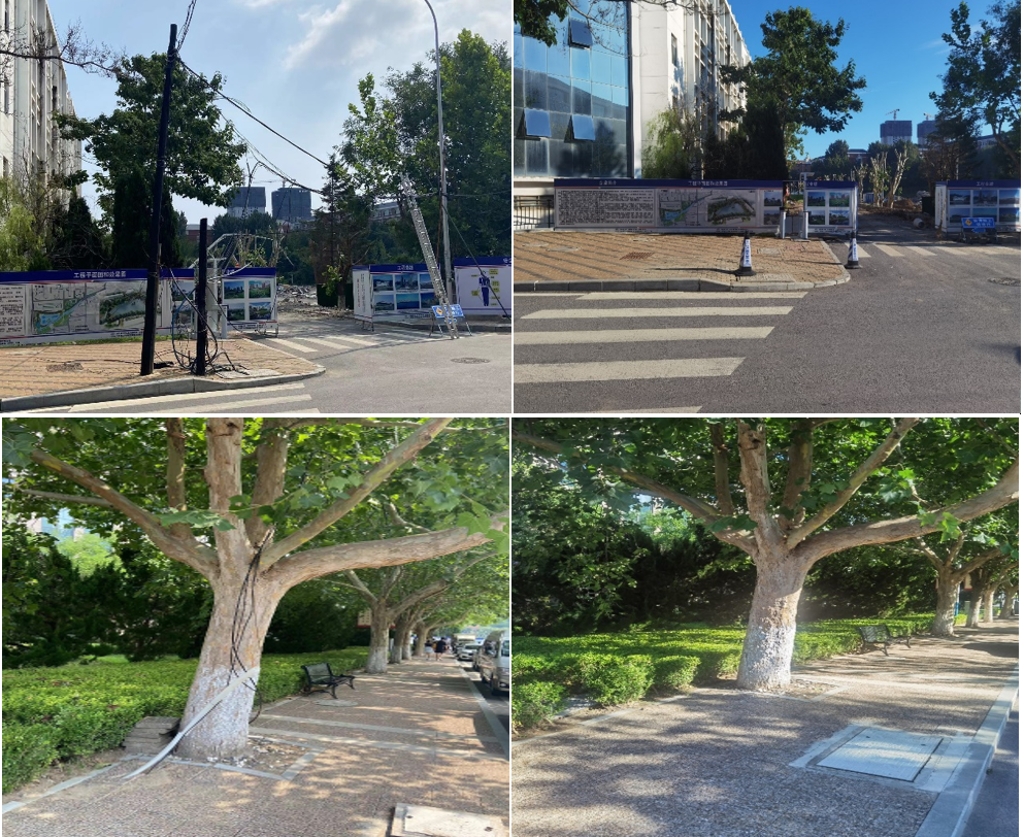 在各单位的积极配合下,经过近2个月的协调和迁移施工,8月11日,该处所有光缆改迁施工完成。校园管理与修缮中心于8月13日至14日,对木制线杆及杆上所有光缆进行割断拆除,并对路口处人行步道方砖进行利旧恢复。修齐路与修远路交叉路口架空光缆落地全部完成,穿树跨路而行的空中“蜘蛛网”全部入地,优化了校园环境,消除了安全隐患,进一步助力幸福大工建设。