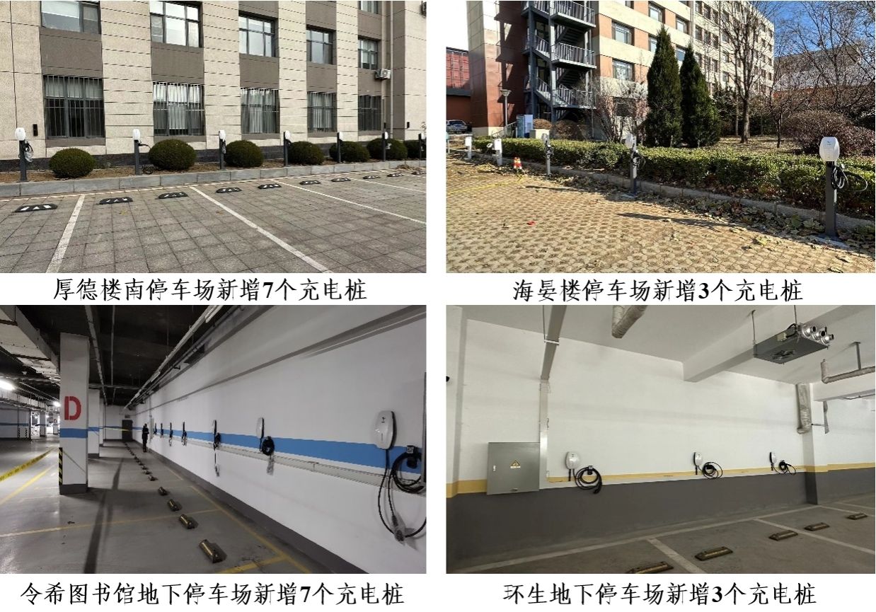 修缮中心通过调研了解到,校内新能源车辆日渐增多,学校教职员工车辆充电需求上升,经多次讨论制定充电桩增设方案:在令希图书馆中心地下停车场D区、生物工程学院地下停车场、厚德楼南停车场以及海晏楼停车场等4处新建20个充电桩,填补了西校区无充电桩的空白。同时,修缮中心积极协调原有充电桩企业,降低海晏楼原有5个充电桩(2快充3慢充)的充电费用(原价格1.04元/度)。目前,校内31个充电桩价格均为0.59元/度(含快充),基本满足校内现有新能源汽车充电需求,为校内广大新能源汽车车主提供更加安全、便捷、经济的充电服务,促进低碳校园建设。