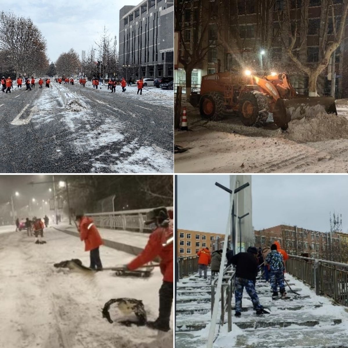 12月14日至16日,大连普降中到大雪。为了保障师生出行安全,校园管理与修缮中心(以下简称“修缮中心”)以雪为令、闻雪而动,提前部署,密切关注气象信息,及时发布《关于极端天气防范预警通知》,同时提前对清雪除冰的环卫绿化人员进行分组,对物资储备、设备检修等准备情况进行全面检查。加强24小时值班值守,务求在最短的时间内高效完成重点区域和主干道路清雪工作,保障校园师生正常生产、生活秩序。