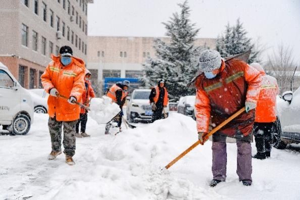 为了保护校园美好环境,环卫绿化工人师傅们不畏严寒、不辞辛劳、齐心协力,集中力量加大人工清扫范围,减少融雪剂的使用,最大程度的减小对校园环境绿化及基础设施的伤害。