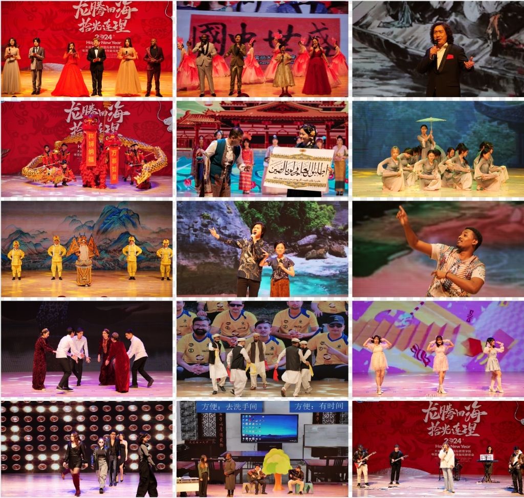 日月其迈,岁律更新。12月29日下午,由国际教育学院主办的“龙腾四海·拾光连理”主题年度盛典暨中外师生新年联欢会在大学生活动中心举行。校党委书记项昌乐、副校长罗钟铉、总会计师冯宝军,党委常委、宣传部部长韩轶,以及市政府外事办公室、市公安局出入境管理局、校内机关部门、各学院相关领导与中外师生欢聚一堂,共贺新年。