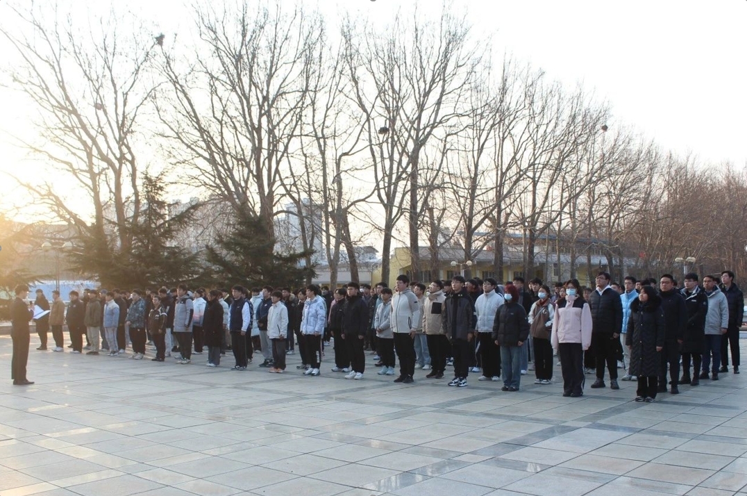伴随着国歌慷慨激昂的旋律,鲜艳的五星红旗冉冉升起,全体师生肃立,面向国旗行注目礼。