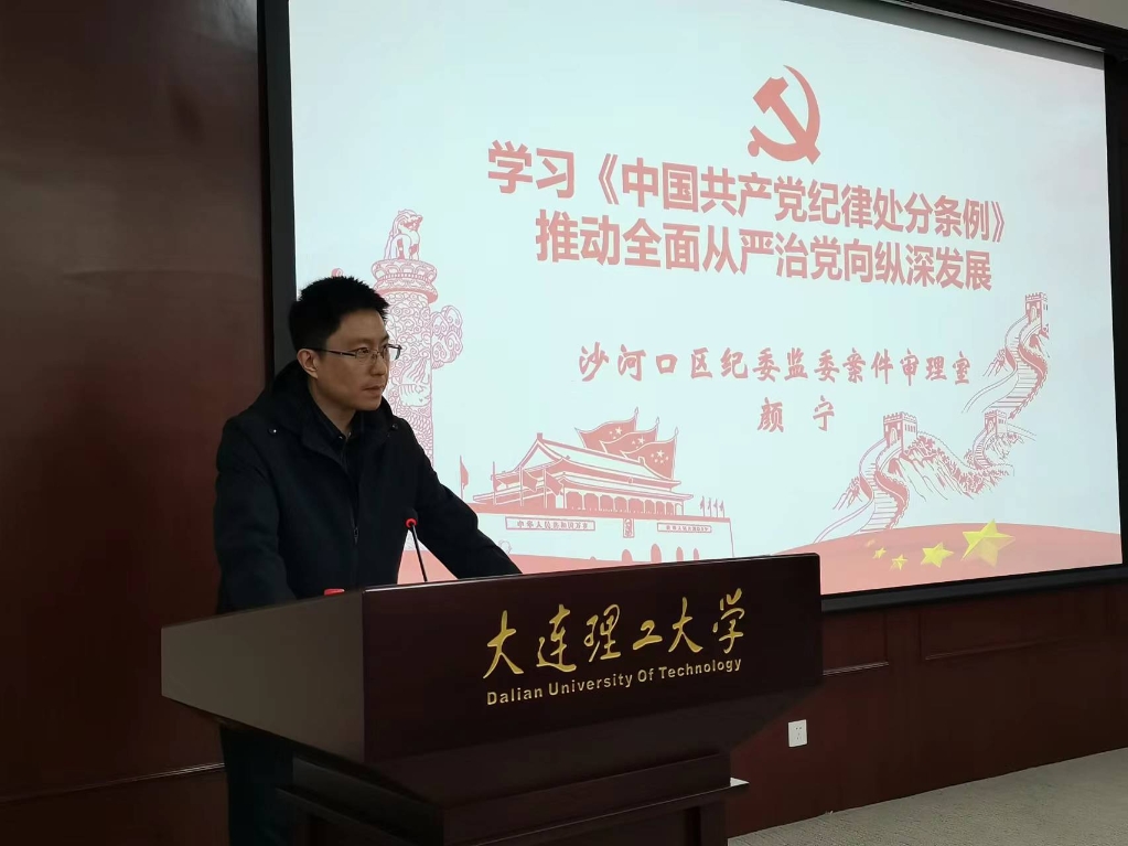 4月19日下午,学校纪检系统党纪学习教育集中学习暨纪检监察干部培训会在主楼中心会议室举行。大连市沙河口区纪委监委案件审理室主任颜宁同志围绕新修订的《中国共产党纪律处分条例》进行解读辅导。学校纪委委员、二级纪检组织负责人、纪检监察机构全体同志参加集中学习。