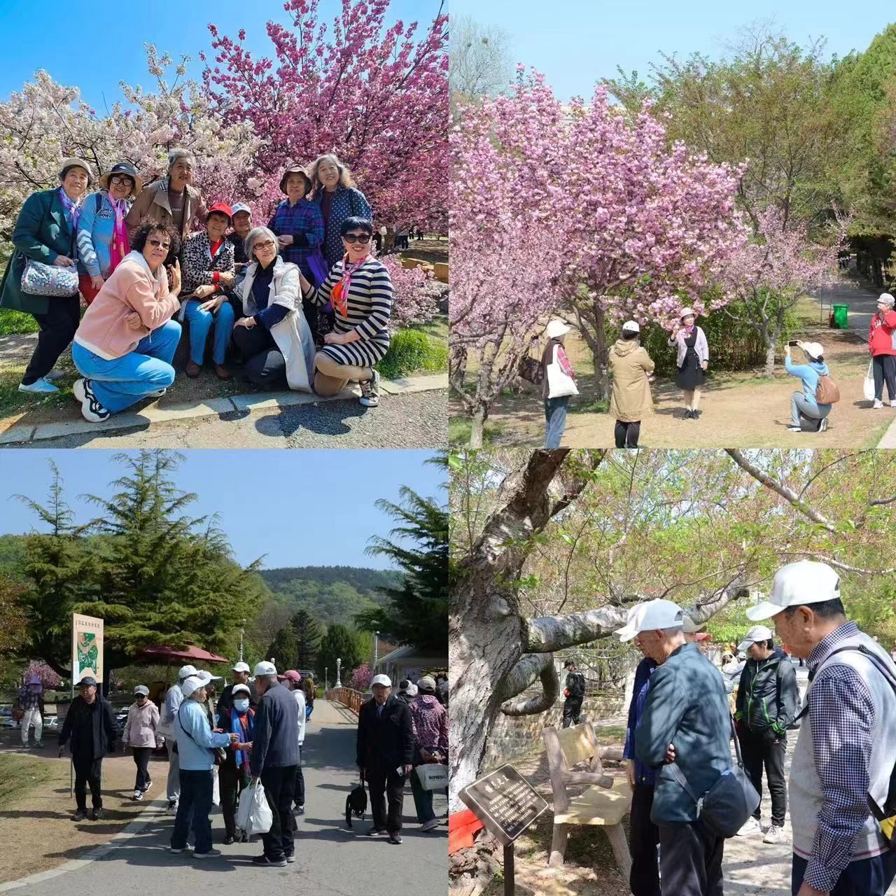 在本次春游中,许久不见的老同志们欢聚一堂,一路欢声笑语地来到了龙王塘樱花园。一树树盛放的樱花繁花似锦,园内碧桃、丁香、月季等其他花卉纵情绽放,形成百花齐放、五彩斑斓的美景。大自然精心绘制的春日画卷,吸引着老同志们纷纷拿出手机或者相机拍照打卡。老同志们三三两两聚在一起,在樱花园中边漫步边交流近况,并不时传出阵阵爽朗的笑声。樱花园清新的气息和万物复苏的勃勃生机让老同志们倍感身心愉悦,流连忘返。