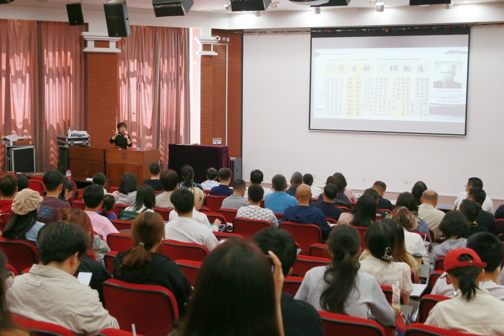 为进一步弘扬中华优秀传统文化,推进以文育人、以文化人,5月15日下午,“文苑”第74期“丹青为伴·诗书传家”书法精要和传承讲座在八角楼A301举办。本次活动邀请我国著名书法家、教育家马叙伦先生之曾孙女、我校建筑与艺术学院副教授马兰老师,深入讲解马叙伦先生的书法精要和传承故事,为师生带来一场精彩的书法美育公开课。
