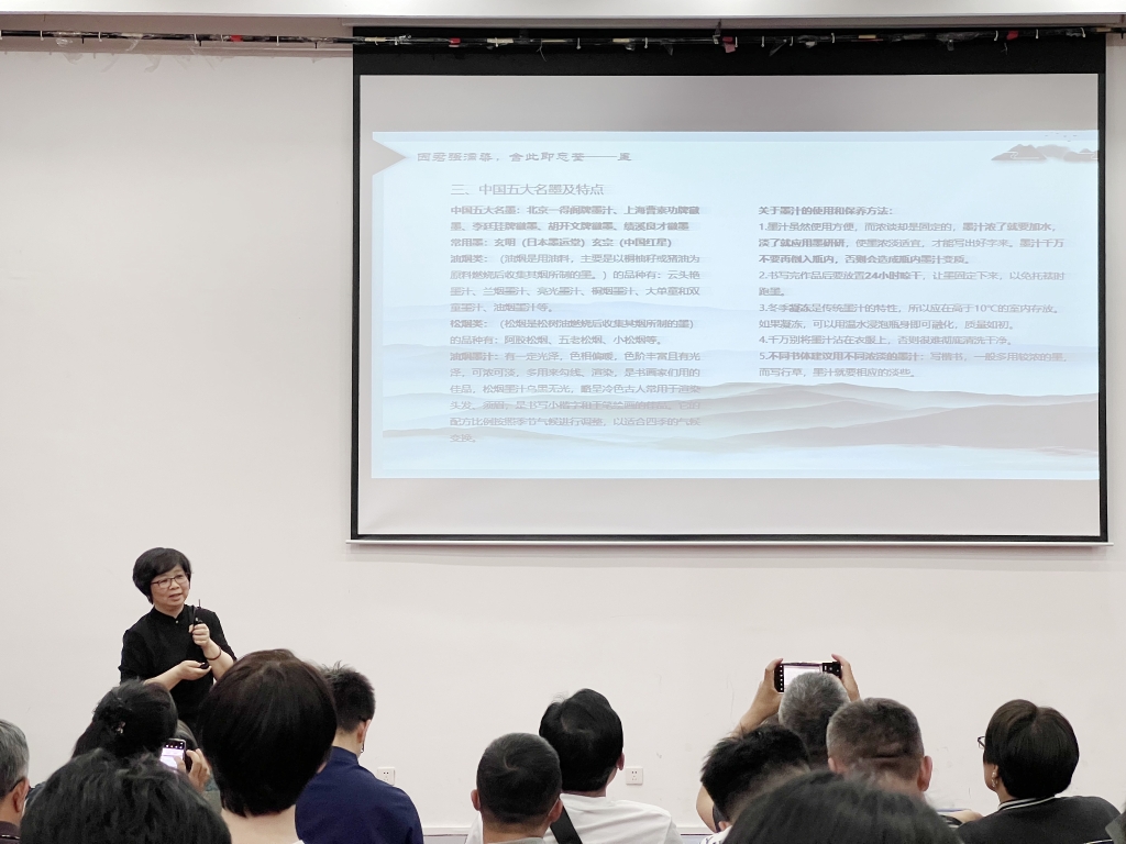 在讲座中,马兰老师详细阐述了马叙伦先生的书法品格和造诣,展示诗书传家的家学渊源,并以家传习书要点为引,系统讲授了书法学习的正确方法和步骤,与师生分享个人练习书法的心得和体会。在交流环节,马兰老师鼓励同学们要勤习多思,以养学为基础,以兴趣为导向,在临帖习字和笔会交流中不断进步。本次“文苑”活动不仅为师生提供了一次深入了解和学习中国书法艺术的机会,也进一步增强了师生对优秀传统文化的认同和自信。