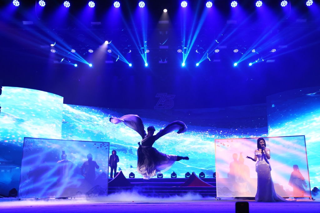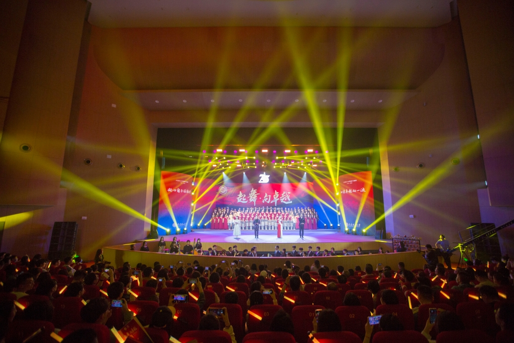 25日晚,“起舞 向卓越”—建校75周年文艺晚会在学生文化中心剧场精彩上演,以“奔向卓越”为序章,“立·初心如磐”“绽·芳华熠熠”“展·筑梦苍穹”三个篇章逐次铺陈开来,歌声、掌声、欢呼声激荡全场。
