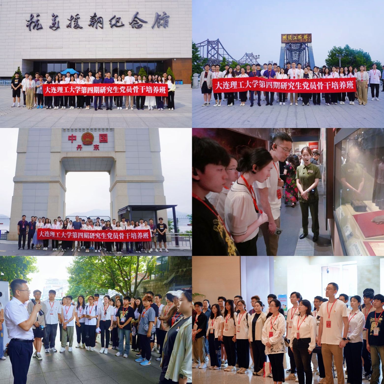 为着力培养学员脚踏中国大地、善作千载之思,进一步学习党的光辉历史,从党史中汲取前行力量,强化理想信念、提升党性修养,立志服务新时代东北全面振兴,按照学校研究生党员骨干培养班培养方案的安排,采取“校内实践+校外实践”相结合的方式开展实践锻炼。校外实践环节,第四期培养班在班主任张晓峰,实践导师李占英、王智宇,理论导师石权、秦雪的带领下,于7月11日至13日前往丹东、本溪走访革命圣地,重温革命历史,学习红色精神。