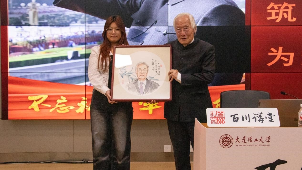 校团委书记赵显嵩代表学校,为刘玉平颁发“百川讲堂”纪念牌;学生代表赠送国画肖像,以表感谢与敬意。