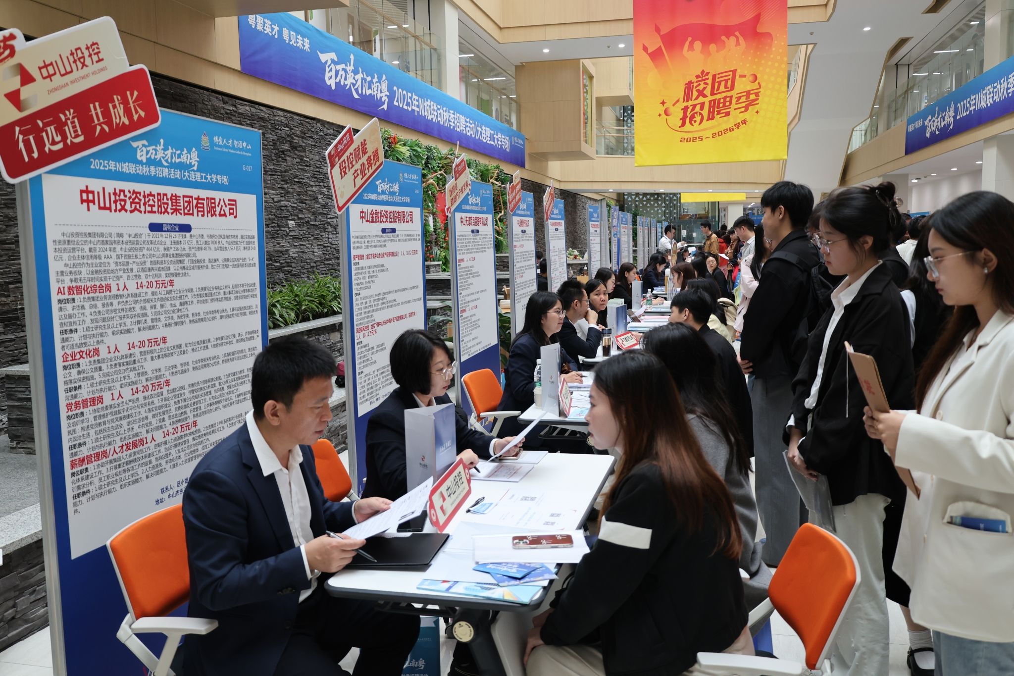 10月15日,“百万英才汇南粤”N城联动秋季招聘辽宁专场在学生文化中心举行。党委常委、副校长康旭东,中山市委副书记、市长尹念红出席活动并致辞,广东省人力资源和社会保障厅党组成员、副厅长邱璟及我校学生服务中心等单位负责同志和相关师生参加启动仪式。