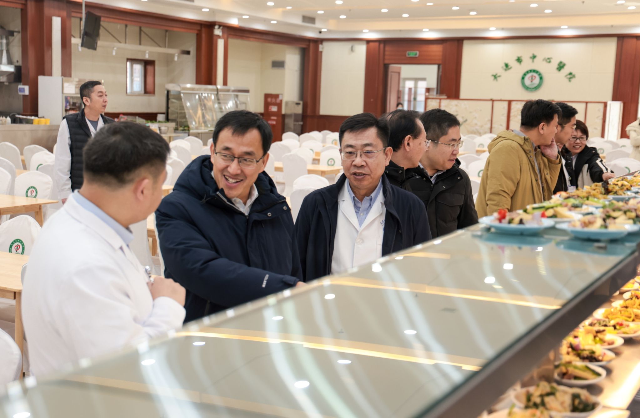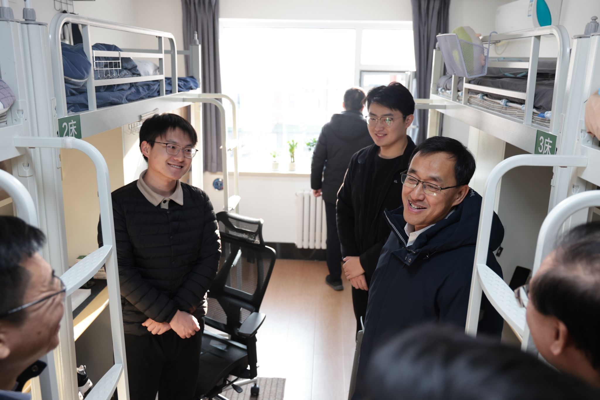 调研期间,张言军深入附属中心医院学生宿舍、体育馆、学生组会及食堂,实地察看学生学习生活环境。在学生宿舍以及组会现场,他与同学们亲切交流,细致了解同学们在院规培实习期间的学习生活情况与思想动态。