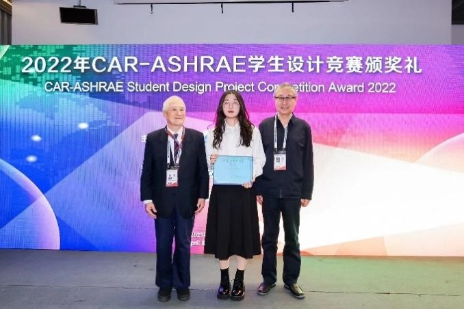 近日,2022年CAR-ASHRAE学生设计竞赛颁奖活动在上海新国际会展中心举行,我校建设工程学部建筑环境与能源应用工程专业学生张津育、李果、李泽和建筑与艺术学院建筑学专业学生罗婉婷共同设计的项目荣获大赛唯一特等奖,同时获得运行策略与自动控制优秀奖,我校建设工程学部张吉礼教授获优秀指导教师奖。会上,张津育代表获奖同学发言,张吉礼代表指导教师发言。教育部高等学校建筑环境与能源应用工程专业教学指导分委员会主任、清华大学朱颖心教授出席颁奖会并致辞,ASHRAE前副主席、ASHRAE亚太区中国区代表徐家祥先生出席颁奖会并致辞。来自全国高校、设计院和企业的20余位专家、指导教师以及40余位参赛同学参加了颁奖会。