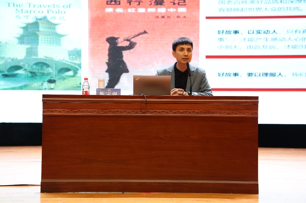 “让我们上路吧,向着金色的撒马尔罕出发”“好故事,要以情感人,好故事,要以实动人,好故事,要以理服人”“讲好故事是国际传播最佳的方式”“主宰世界的是利益,影响世界的是情感”“以微视角感受‘国之大者’,以平凡人物讲述丝路故事” “有质量的人生离不开使命二字”资深媒体人、梦工坊青年人才发展中心理事长、人社部就业创业指导专家靳宝强以一带一路节目为例,为训练营做第二场主题报告,讲授大学生国际视野的培养以及自身发展规划的制定。靳宝强指出大学生要服务国家战略、具备国际视野、做国际化人才。国际视野可以让我们看到一个更加多元的精彩的世界,国际话语权是国家软实力的重要组成部分,加强国际传播能力建设要讲好中国故事、传播中国声音,让世界了解真实的中国。