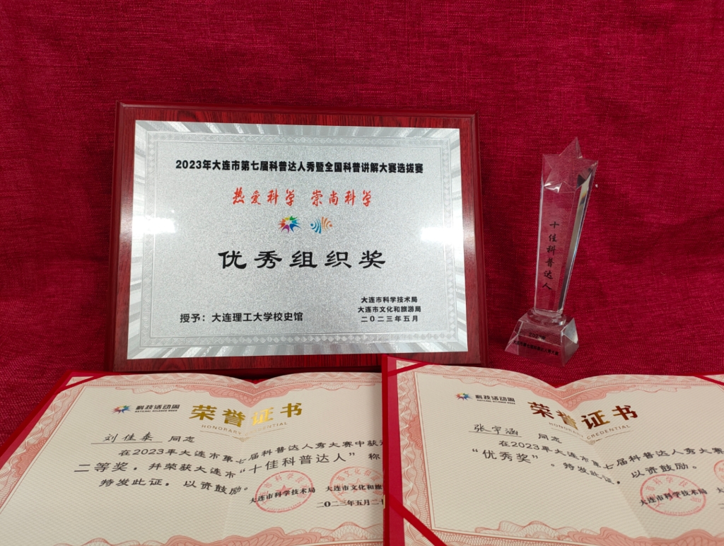 近日,大连市第七届科普达人秀大赛暨全国科普讲解大赛选拔赛在大连自然博物馆圆满落幕。历经近一个月的申报,专家公平、公正、客观的评议,我校校史讲解员与近40位来自大连市各博物馆、大连海关、大连市气象局、大连市血液中心等科普基地的专业讲解员和科普爱好者们同台竞技,一展风采。我校校史讲解员,电子信息与电气工程学部2020级本科生刘佳泰的作品《走向深空的一把钥匙》荣获大赛二等奖,刘佳泰荣获大连市“十佳科普达人”称号,环境学院2022级硕士研究生张宇涵的作品《世界上最危险的污染物:无处不在的POPs》,荣获大赛优秀奖。大连理工大学校史馆荣获优秀组织奖。