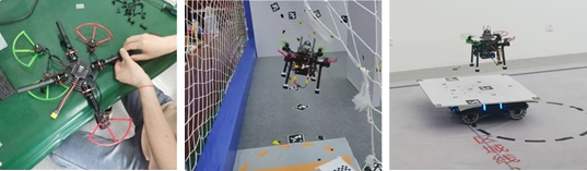 此次大赛荣获全国冠亚军,得益于参赛团队的精心筹备、砥砺创新、敢打敢拼。参赛团队自主研发了核心算法,可实现高实时的定位与建图、复杂环境下全局路径规划与轨迹优化,并实现定位不确定性的鲁棒控制、复合高精度置信码设计、面向移动车的鲁棒精准着陆等功能。在决赛赛场上,我校参赛团队发扬了敢打敢拼的“亮剑”精神,张雪涛老师带领的两支队伍的无人机稳定性高,高速完成迷宫环境的自主穿越,且精准地着陆在移动无人车上,以28秒和43秒成绩勇夺冠亚军,比赛成绩远优于其他参赛队伍。