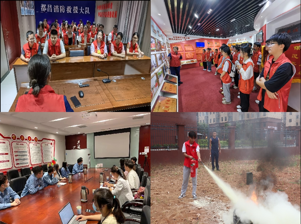 “云程发轫”实践团走进都昌消防救援大队,调研消防指战员工作现状、体验油池灭火、单杠训练、抱水枪等活动,体验到消防员在训练中的辛苦和工作的不易和消防工作的重要性。